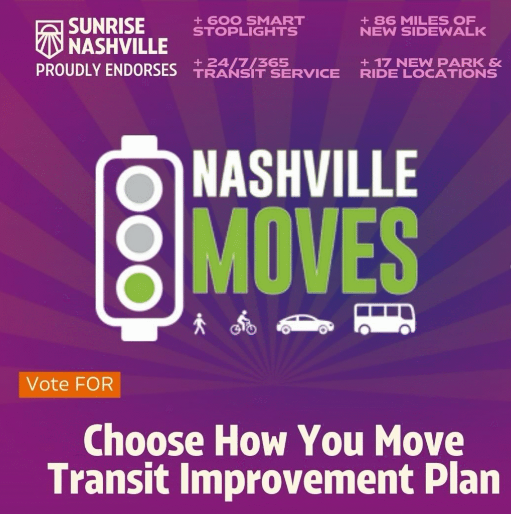 We endorsed the Nashville Moves Transit Referendum to provide funding for buses, bike infrastructure, sidewalks, and improved stoplight technology.